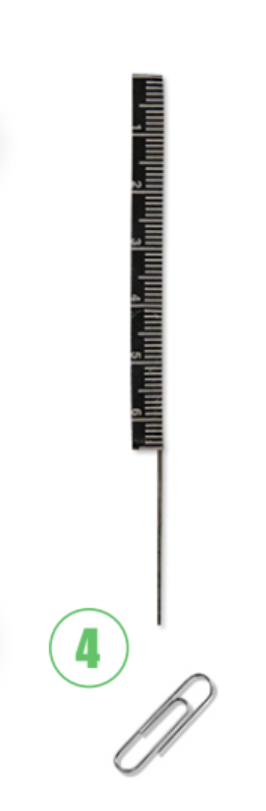 Miniature Ruler - Rulers can be printed HERE. Print and cut out the ruler, then tape it to a straightened paperclip.