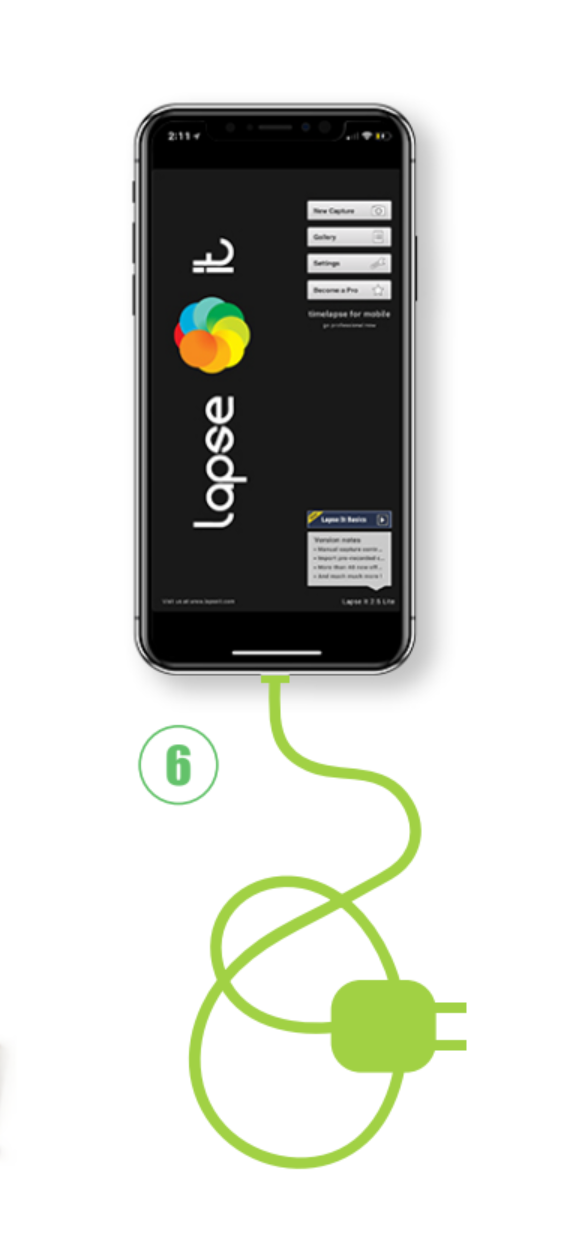 Turn your device to airplane mode foruninterrupted video capture. Plug your device into an electrical outlet to maintain battery power.